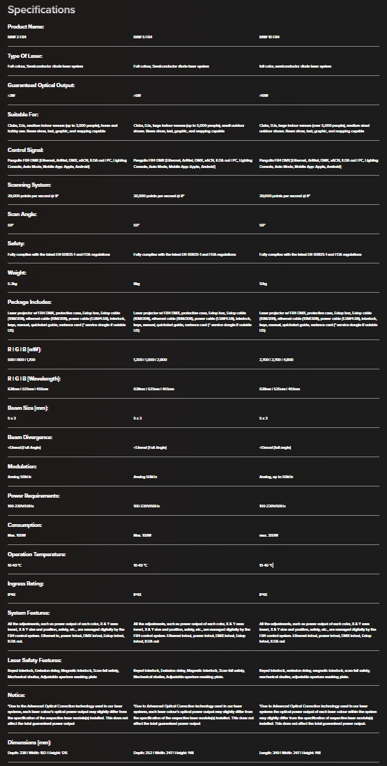 Unity RAW FB4 lasers come with the FB4 hardware integrated inside. Allowing you to control these lasers from a lighting console, PC, as well as in stand-alone “auto” mode. Additionally, the lasers support all major lighting protocols (DMX, ArtNET, sACN, timecode, and more) so you can easily integrate into any advanced multimedia show workflow. Multiple lasers can also easily be connected (over ethernet, ArtNET, or DMX) so you can run synchronized multi-projector shows easily.