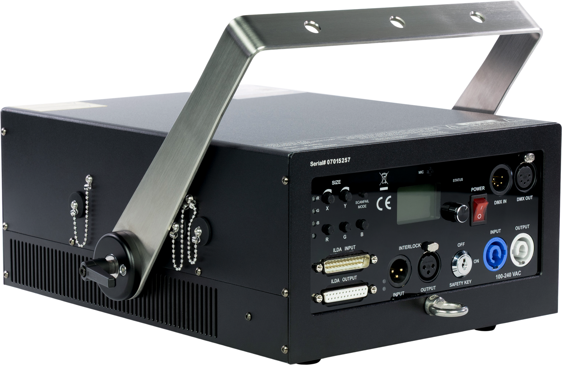The Unity RAW 10 (DMX+ILDA) is a full color RGB, diode-based laser systems, designed for large indoor venues, and medium to large scale outdoor shows, and clients who need impactful aerial beam effects, with the ability to also produce laser graphics, logos and text